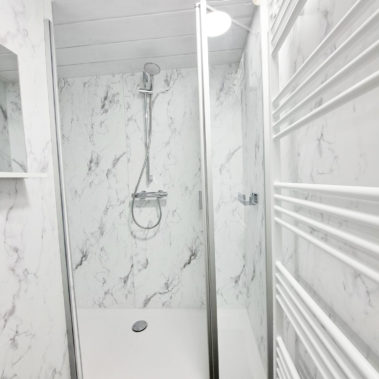 Im Obergeschoss (geschlossene Treppe) befinden sich 3 Schlafzimmer mit Doppelbett 180×200 und TV, 2 Schlafzimmer mit einem Einzelbett 90×200 in diesen beiden Schlafräumen befindet sich kein TV, 1 Dusche, 1 WC, 1 Badezimmer mit Dusche, Badewanne und WC, 1 Wohnzimmer mit TV und Zugang zur Balkonterrasse mit Sitzgelegenheit und Sonnenschirm. Übrigens haben alle Schlafräume Rolläden zur Verdunkelung. An den Fenstern befindet sich hochwertiger Insektenschutz.