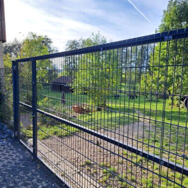Vor dem Haus ist der Außenbereich auch schon mit einer extra eingerichteten Schleuse mit Doppelstabmattenzaun ausgestattet, so dass ihre Hunde und Kinder direkt ab der Haustüre entspannt und sicher in das Gelände können. Direkt vor der Haustüre befinden sich auch Sitzgelegenheiten mit Sonnenschirm.